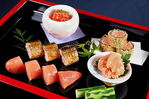 ふぐの刺身、唐揚げ、鍋、お寿司など