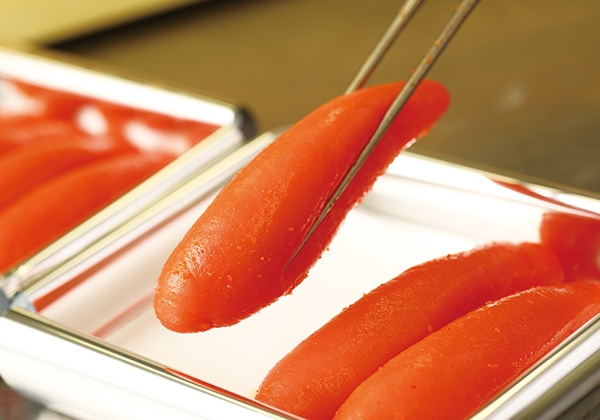 独自の調味液の配合、一本一本のたらこに合わせた漬け込み時間の見極めで、味わい深い逸品に仕上げます。