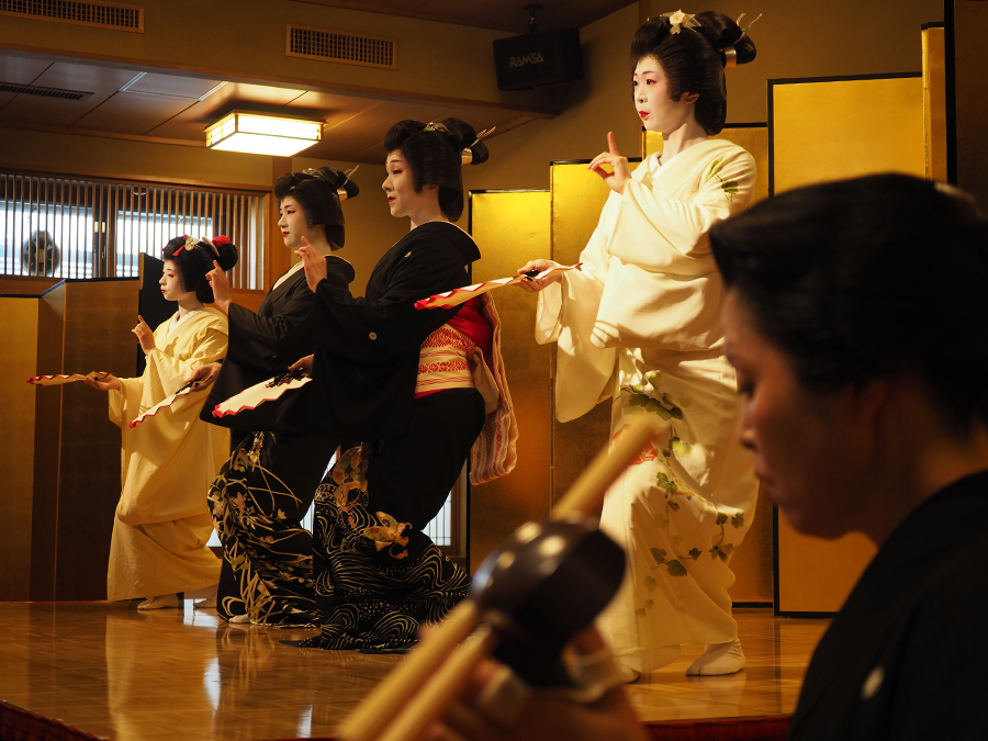 雅な舞や唄の鑑賞はもちろんのこと、お食事をしながら芸妓衆との会話に興じたり、伝統的なお座敷遊びを体験したりと、普段味わうことのできない非日常をご堪能いただけます。