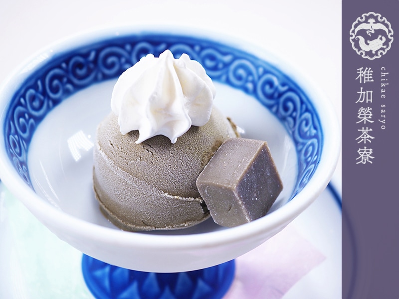 「うきはの山茶」の焙じ茶を使用した、茶寮オリジナルアイスクリームです。